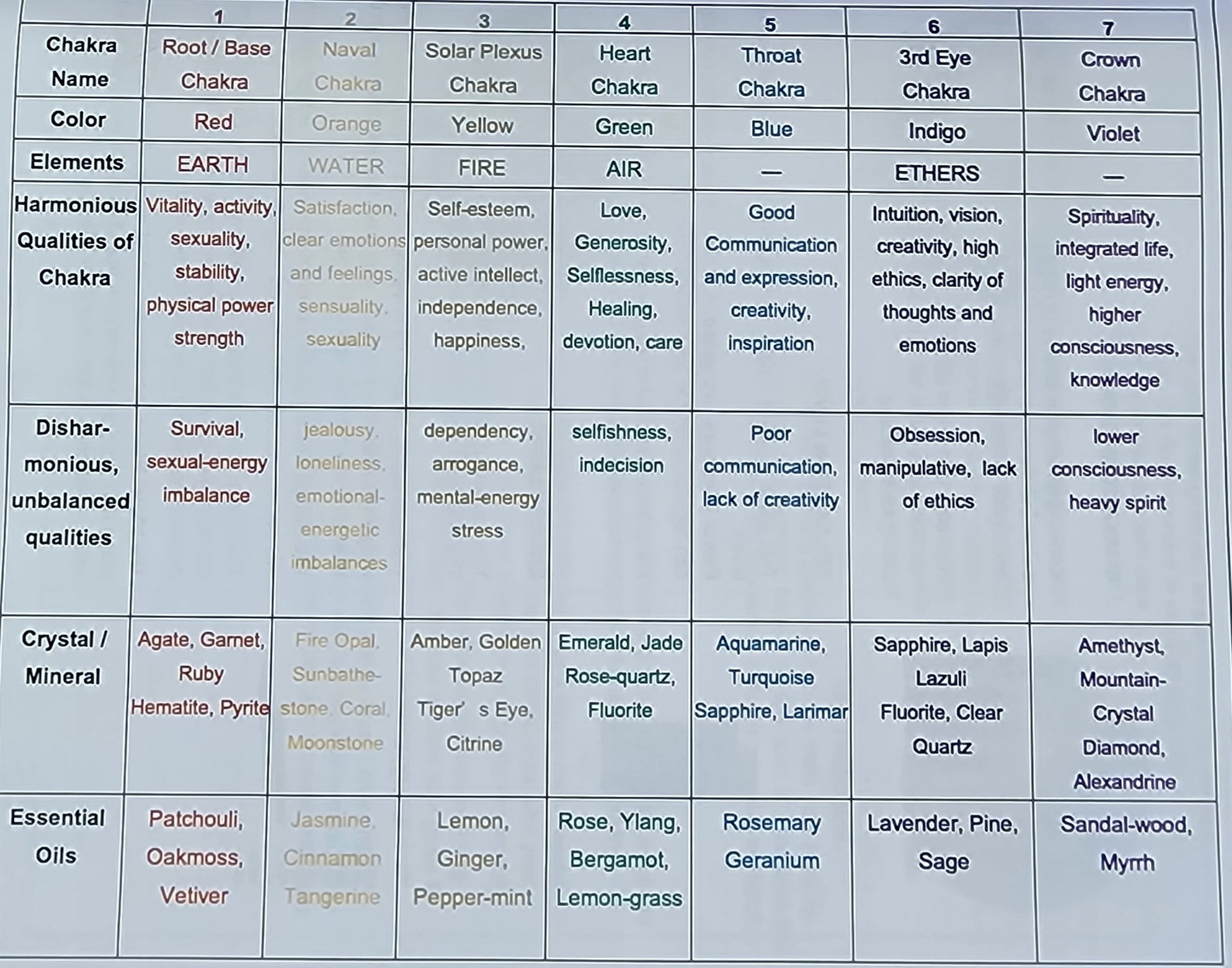 Aftercare is provided after each session with lots of information with related techniques-practices on how to work on your low energy fields to achieve higher energy such as, yoga practices, meditation, aromatherapy, foods to consume, crystals for assistance and more.